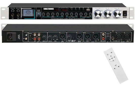 Karaoke Digital Processor, Mixer, Anti-Feedback with Remote & Phone Apps