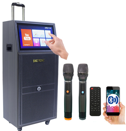 Singtronic BT-888Pro Professional Portable 12" Bluetooth Speaker via Youtube Karaoke System 15.6" Touch Screen